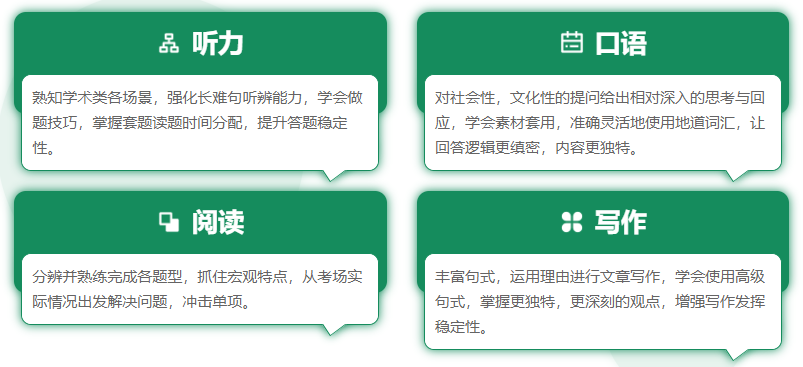 雅思考试考前准备很重要。雅思考试即将到来,总觉得自己之前复习的听力、写作、阅读、口语一塌糊涂,没有了计划和预期的进度。嘉贝教育雅思考前班,在夯实英语基本能力的基础上,从听,说,读,写四项入手,通过理解、归纳、整理雅思考试的各种题型。